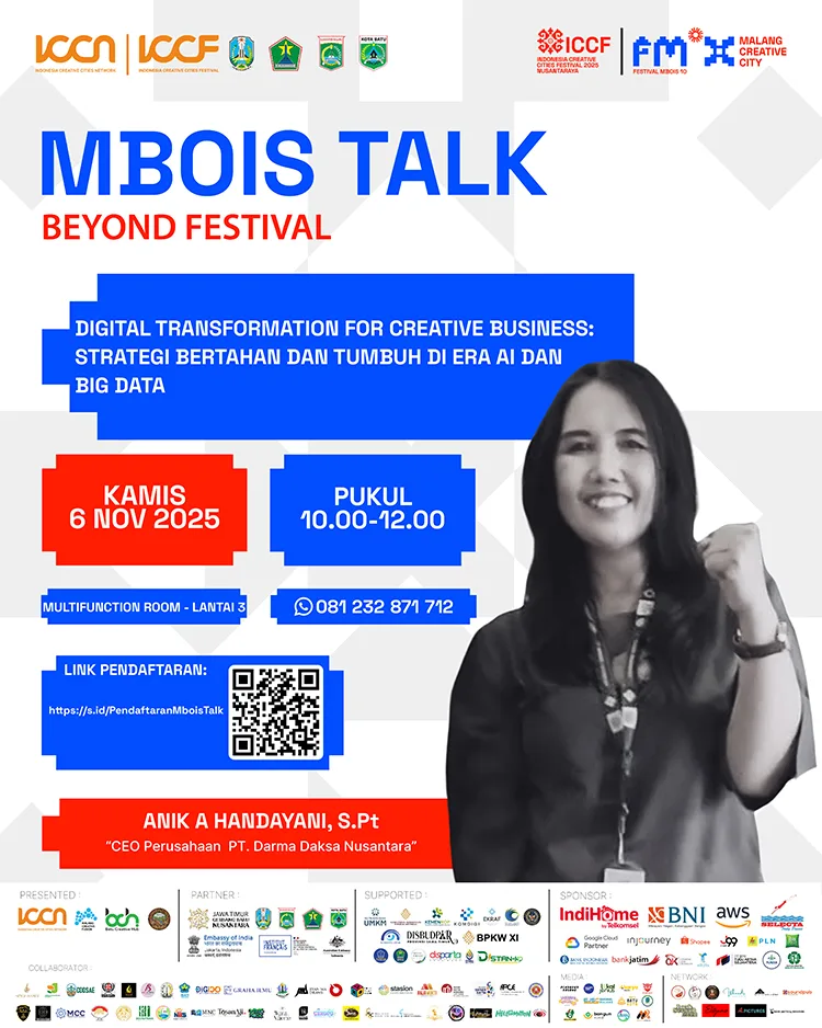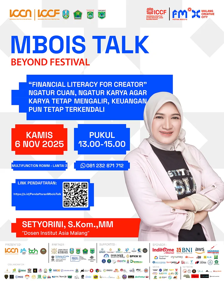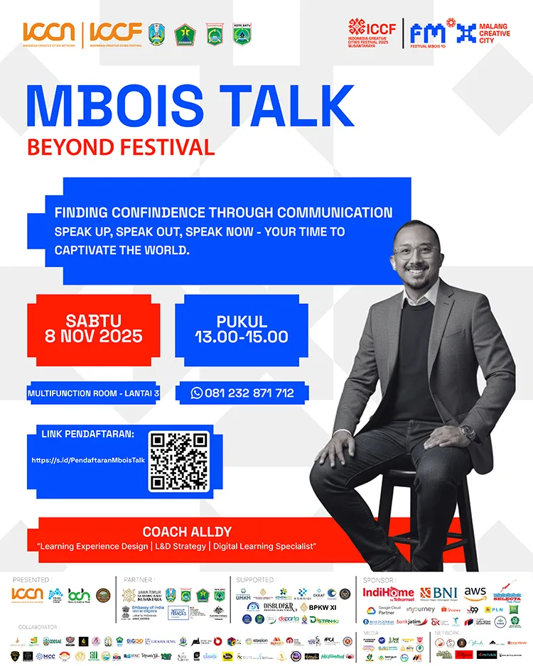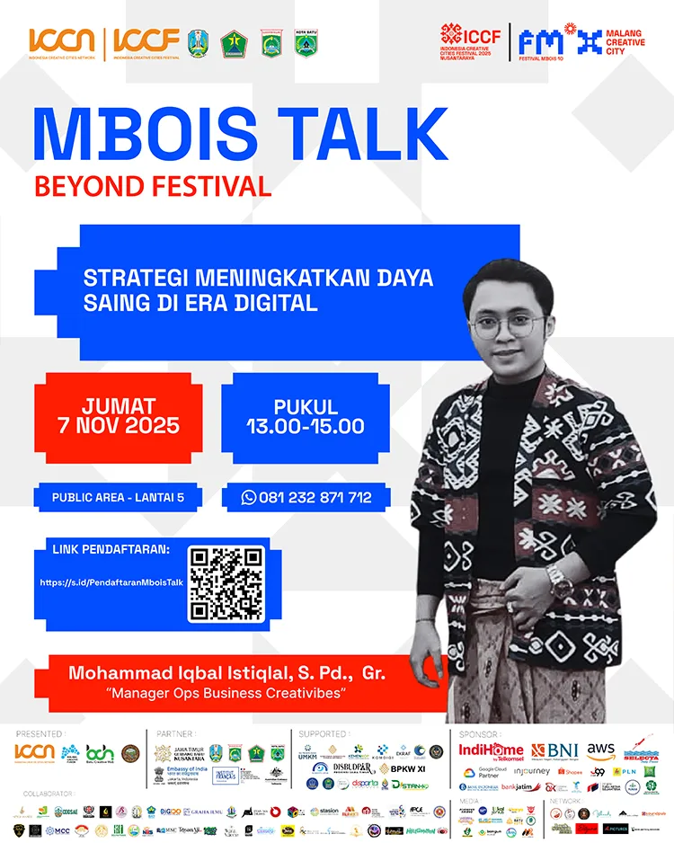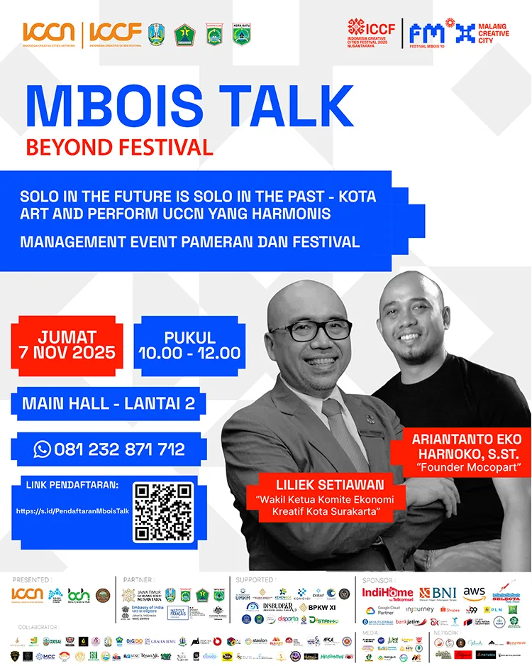 FMX juga menghadirkan beragam kegiatan menarik dan inspiratif. Di antaranya, berbagai pameran seperti Exhibition & Showcase Komunitas, Bazar Ekonomi Kreatif, Festival Keris, Mbois Noise Fest, Festival Music, Mbois Talk, Workshop & Sharing Session, hingga International Conference (ICCF 2025).