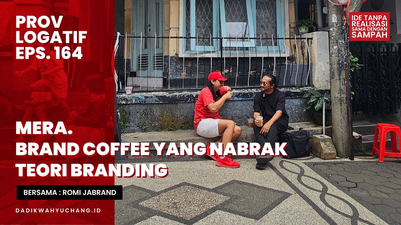 Nah, untuk mengetahui jawaban dari pertanyaan tersebut, simak obrolan seru antara Dadik Wahyu Chang (seorang branding consultant sekaligus founder UTERO Indonesia) dengan Romi Jabrand (seorang enterpreneur, praktisi dan aktivis brand asal Cilacap) dalam video bertajuk “PROVLOGATIF EPS 164 | MERA. – Brand Coffee yang Nabrak Teori Branding.”