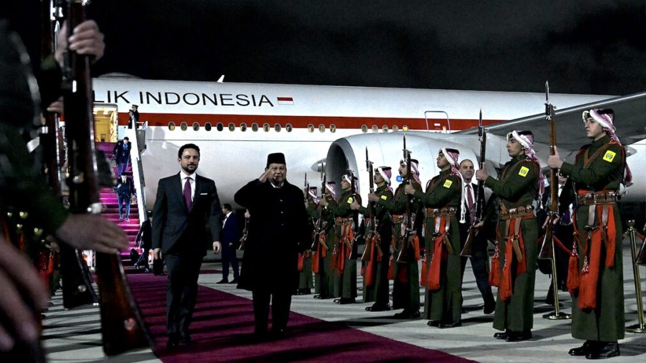 Presiden Prabowo Subianto melakukan kunjungan kerja ke Yordania pada Selasa, 24 Februari 2026, guna mempererat hubungan kerja sama kedua negara. Kedatangan Kepala Negara yang dikawal pesawat tempur F-16 Angkatan Udara Kerajaan Yordania mendarat di Bandar Udara Militer Marka, Amman, sekitar pukul 20.00 waktu setempat.